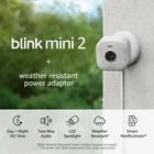 Mini 2 is our second generation plug-in smart security camera that helps you stay connected to what’s happening in your home, right from your smartphone. See and speak from the Blink app — Experience 1080p HD live view, night view in color with a built-in spotlight, a wider field of view, and crisp two-way audio. Stream live video continuously for up to 90 minutes with a Blink Subscription Plan (sold separately). Outdoor use — Plug in Mini 2 outside your home with the Blink Weather Resistant Power Adapter (sold separately or as part of a bundle) and mount with the included kit. Motion detection — Get real-time motion alerts on your smartphone so you can react and engage from anywhere. Smart notifications — Get intelligent alerts including person detection with embedded computer vision (CV) as part of an optional Blink Subscription Plan (sold separately). Easy set up — Install your camera in just minutes to help provide full home coverage. Doorbell chime — Use Mini 2 as a plug-in chime for Blink Video Doorbell (sold separately). Hear a real-time alert from Mini 2 when someone presses your Blink Video Doorbell. Save and share clips — Choose to store events in the cloud with a free 30-day trial of the Blink Subscription Plan or locally with a Sync Module (each sold separately). Works with Alexa — Connect to an Alexa-enabled device to engage live view, arm and disarm your system, and more using your voice. Includes one Blink Mini 2 camera, one Blink USB-C 13ft Weather Resistant Power Adapter, mounting kit including stand, USB cable, and power adapter. Here’s what customers are saying The Blink Mini 2 has exceeded our expectations in terms of performance and ease of use. The video quality is excellent, providing clear and crisp footage of our home. We would highly recommend this product to anyone in need of a reliable home security solution. – Jodi F. Love the wide angle camera; coverage is great. I actually purchased this to use as the doorbell chime for my two doorbell cameras. It works perfectly. Easy to install. Easy to integrate into my system. – GB3 Best Blink Mini yet! The size, ease of use, and versatility pack a big punch and offer so many options to use around my home. Inside, outside, daytime, night — I may buy another! – Ryan