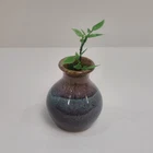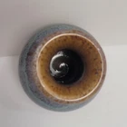 Art Pottery Drip Glaze Mini Bud Vase in shade of Purple, Blue and Brown. 3.5" Tall, Signed. Excellent condition.