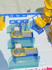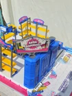 Just add mini products. Or use imagination and add in any figures. Comes with original box and booklet. Makes grocery store sounds. The set is almost complete; missing one of the yellow stoppers at entrance, register sign and a couple others. Your kiddo would still love this and play 'grocery store'. I remember when I did! Offers welcome.