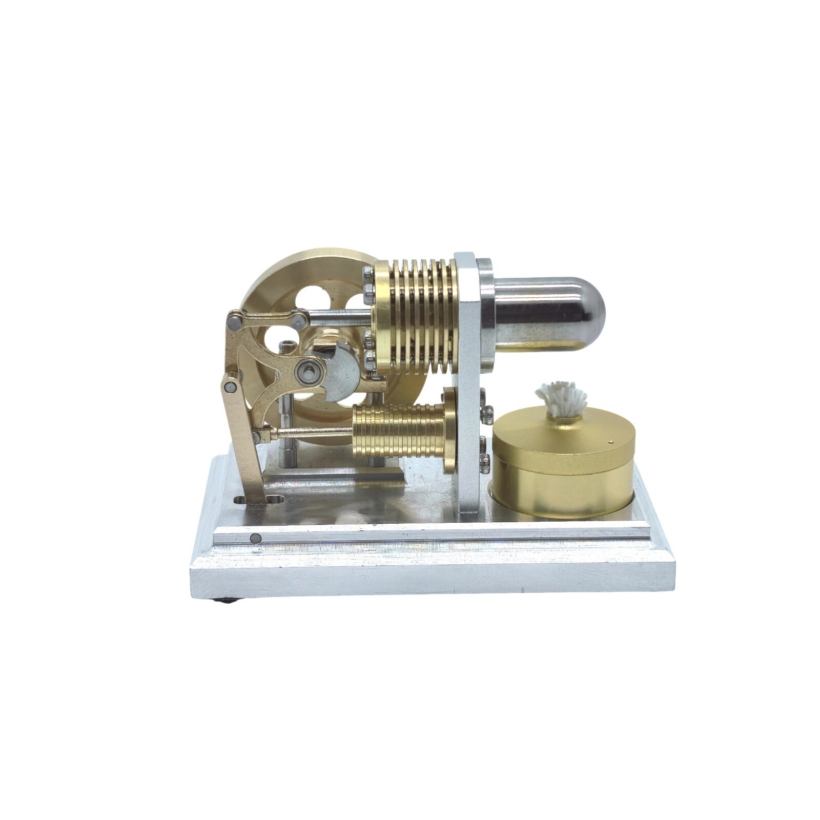 If you appreciate precision engineering, this Ultra-Micro Horizontal Stirling Engine is a masterpiece. Made from Brass and Stainless Steel , with a improved aluminum alloy base , it's as sophisticated as it is compact. Built by the Vintage Model Workshop , led by Mr. Jin , this is one of the smallest working Stirling engines ever made - until you build a smaller one. Designed for collectors, hobbyists and model lovers, it is perfect for Desk displays or display case collections . 🔥 Key Specifications: Material: Brass, Stainless Steel, Aluminum Flywheel Diameter: 29mm Starting Method: Manual Fuel: 95% purity alcohol Dimensions: 65 x 42 x 45mm Weight: 108g Package Includes: ✔ Stirling Engine Model ×1 ✔ Alcohol Lamp ×1 A true gem for Stirlingmotor fans - small, stylish and fully functional. New store, no ads - just great deals! Send me your offer and I will surprise you with a special discount!