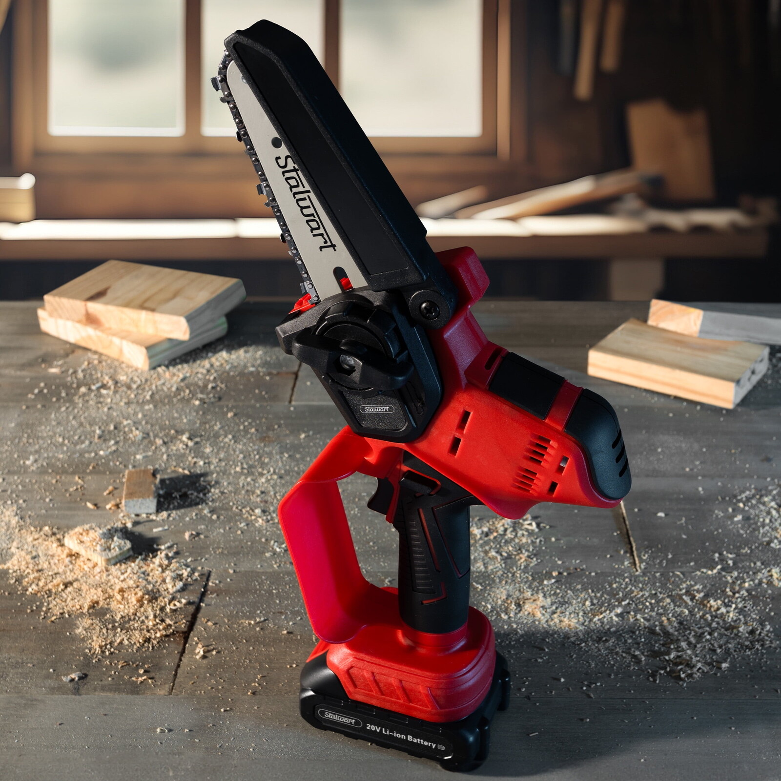 8-Pcs 17Qt Snap Top Clear Plastic Storage Tote Container Organizer Bin Box Gray 30.22 USD 32.49 USD Free shipping 7% off 4 Tier Fabric 16 Pairs Shoe Organizer 16 Compartment Shoe Racks Storage Shelves 31.42 USD 33.79 USD Free shipping 7% off Wide 3 Drawer Cross-Weave Tower Cement DRESSER CHEST CABINET for Living Room NEW 41.5 USD 44.62 USD Free shipping 7% off 13.2 Gallon Trash Can Plastic Motion Sensor Kitchen Trash Can Garbage Can Home 40.65 USD 43.71 USD Free shipping 7% off 16 QT Laguna Hard Sided Ice Chest Roller Cooler for Picnic Beach Camping Travel 33.7 USD 36.24 USD Free shipping 7% off 12V Max Cordless Variable speed Impact Driver with 1.5Ah Battery and Charger NEW 42.24 USD 45.42 USD Free shipping 7% off 12V Max Lithium-Ion Cordless Variable speed Impact Driver 1.5Ah Battery/Charger 42.24 USD 45.42 USD Free shipping 7% off Rechargeable LED Headlamp Weatherproof Drop Resistant Work Light Bar Headlight 36.2 USD 38.93 USD Free shipping 7% off Socket Set 1/4" Drive Socket &Ratchet Set 6-Point Socket &Ratchet Set 54 Pieces 32.31 USD 34.74 USD Free shipping 7% off Grain-Free Chicken & Pea Recipe Dry Dog Food 24 lbs for Dogs of All Life Stages 42.22 USD 45.4 USD Free shipping 7% off NEW Aquarium Fish Tank Filter for Aquariums 20-40 gallon Tanks 3-step Filtration 57.9 USD 62.26 USD Free shipping 7% off Floodlight Max Solar Power LED Flood Light Motion Activated Solar Outdoor Light 36.22 USD 38.95 USD Free shipping 7% off Completing yard work has just gotten easier with the 5 Inch Chainsaw by Stalwart. This power tool set comes with a saw, a pre-attached chain, a lithium ion battery and charger, an empty bottle to hold lubricant (not included), and a convenient plastic carrying case to store it all in. Use the hand saw as a tree trimmer to cut back small trees, to prune hedges, shrubs, and bushes, or to saw through larger logs to make them more manageable, making it the perfect addition to your gardening tools. Stalwart, for gadgets for men and women that are SMART, STRONG, and SECURE. HAND TOOLS SET - The tool set comes with an electric saw, a chain with a 1/3-inch pitch, a lithium ion battery and charger, a bottle for filling with lubricant (not included), and a plastic carry case. SMART FEATURES - Weighing just over 5lbs, the battery chainsaw offers a compact and lightweight design that can be operated with one hand and makes about 50 cuts on a single charge for daily yard care. STRONG CONSTRUCTION - The battery powered chainsaw is made of durable plastic with a steel blade and includes a hard case to protect the kit when not in use. SECURE DESIGN - This mini chain saw features a brake that stops the blade when the power switch is released, a protective plate, sprocket cover, and a safety switch to help prevent accidental starts. You may also like Set of 3 Wall Cubes Wall Mount Storage Rack Floating Display Home Decor Office 26.66 USD 28.67 USD Free shipping 7% off 12" Round Ceramic Planter Plant Pot w/Hole &Removable Plug Weather-Resistant US 29.0 USD 31.18 USD Free shipping 7% off Freeze-Dried Broccoli Florets and Stems 7 OZ Emergency Food Storage Survival Can 27.8 USD 29.89 USD Free shipping 7% off 20-Piece Flatware Set Service for 4 Flatware Cutlery Utensil Dishwasher-Safe US 36.2 USD 38.92 USD Free shipping 7% off 2-in-1 Snug'n Secure Swing w/High Back and T-Bar Pink- Infant Baby Toddler Swing 33.81 USD 36.36 USD Free shipping 7% off Floral Comforter Set 3-Piece Cotton Bedding Full Queen Jacobean Tasseled New 65.1 USD 70.0 USD Free shipping 7% off 2 Quart Cooking Pot with Lid Non-Stick Cookware with Metallic Ridge-Line Pattern 43.57 USD 46.85 USD Free shipping 7% off 12 Inch Oscillating Table Fan Powerful 3 Speed Indoor Cooling Portable Fan New 39.79 USD 42.78 USD Free shipping 7% off 208 Piece Tool Set Household Hand Tool Kit Auto Repair Tool Box for Home Repairs 86.47 USD 92.98 USD Free shipping 7% off One-Step Hair Dryer and Styler Volumizer Hot Air Brush 2 heat/speed settings US 29.04 USD 31.23 USD Free shipping 7% off Stack System 21 Inch Tool Box Wrench Organizer Bin Fits Modular Storage System 33.78 USD 36.32 USD Free shipping 7% off Lead Sled Solo Adjustable Recoil Reducing Rifle Shooting Rest Shooting Stability 115.3 USD 123.98 USD Free shipping 7% off