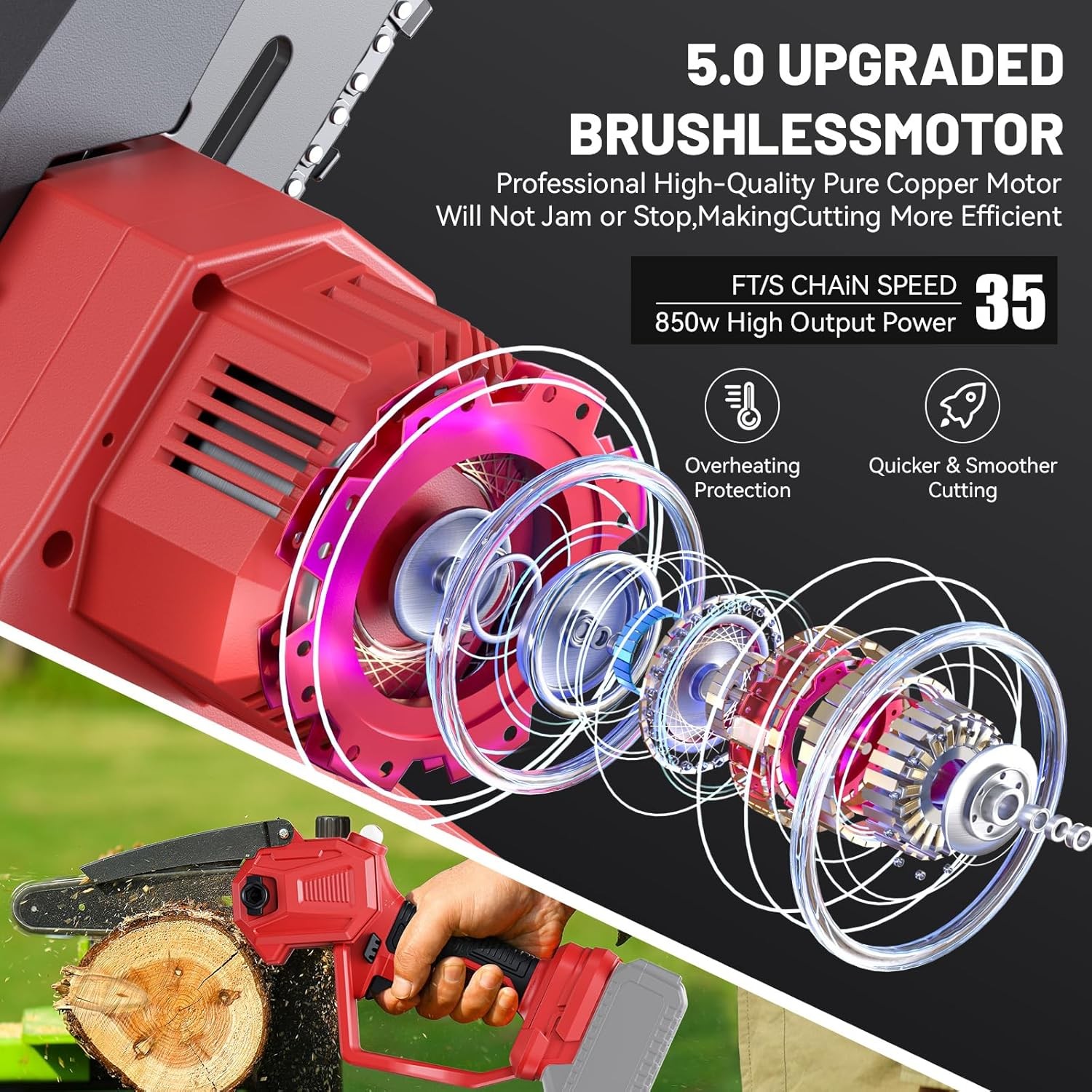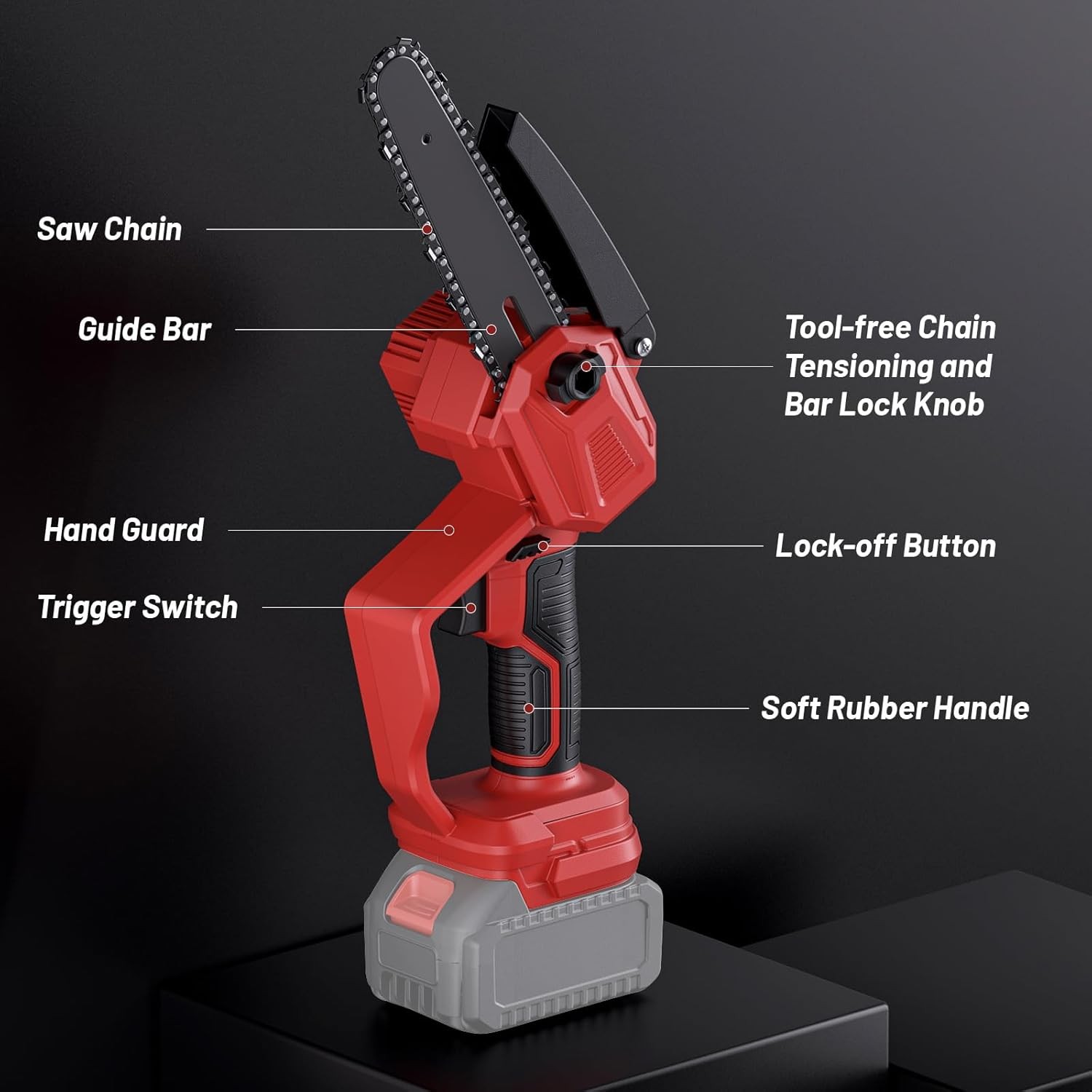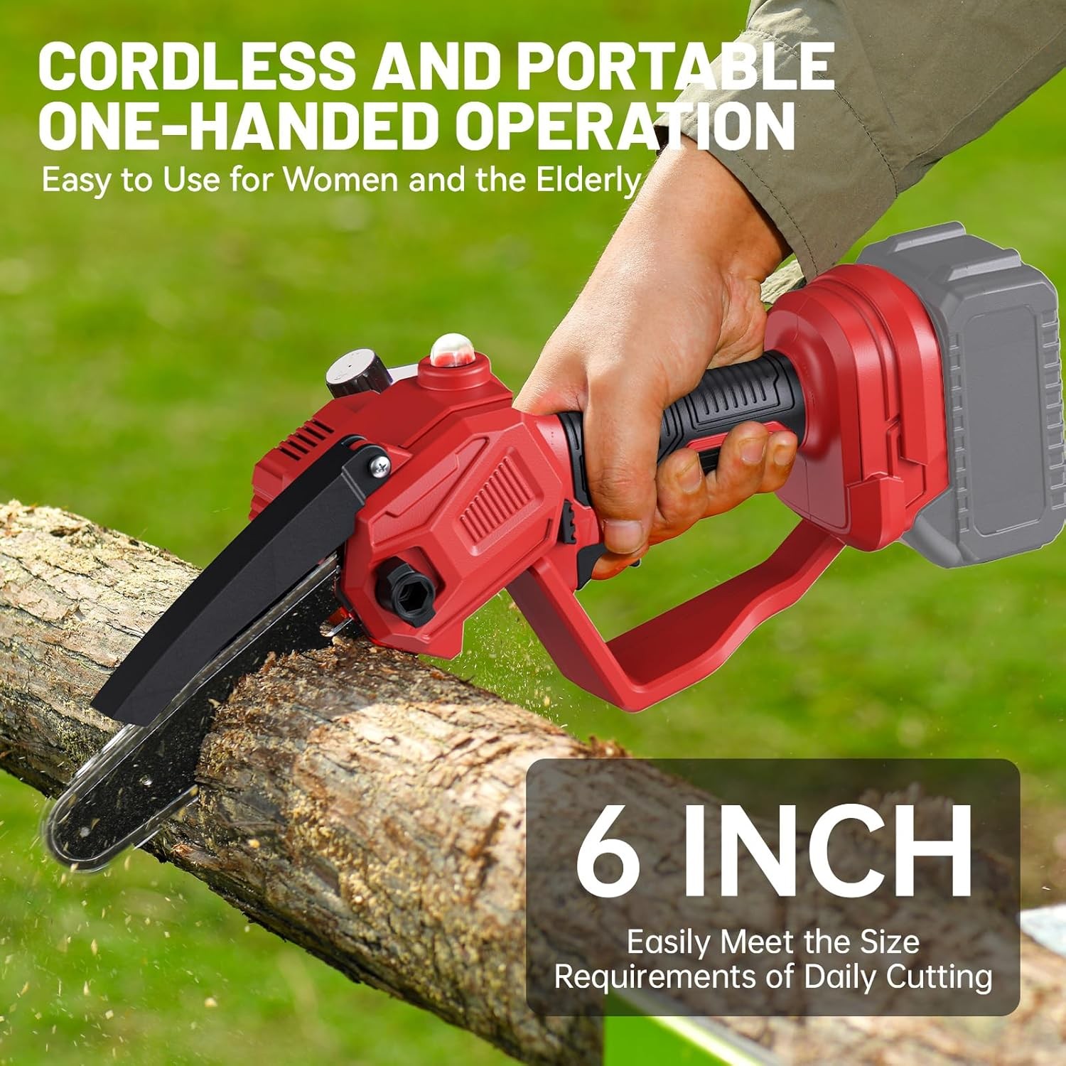 Mini Chainsaw for Milwaukee M18 Battery, 6-Inch Brushless Cordless Pruning Chain-saw, Battery Powered Mini Chainsaw for Wood Cutting, Sharp for Tree Trimming (No Battery) Description Unleash the power of this mini chainsaw designed for Milwaukee M18 batteries. With its 6-inch brushless cordless pruning capability, this battery-powered chainsaw effortlessly cuts through wood, making tree trimming and pruning tasks a breeze. Its compact size and sharp chain ensure precise cuts, while the cordless design offers unmatched mobility. Tackle your outdoor projects with confidence, knowing this mini chainsaw delivers exceptional performance. Please note that batteries are not included with this purchase. Features: Compact and Powerful: This 6-inch brushless cordless mini chainsaw is designed for Milwaukee M18 batteries, offering a lightweight and maneuverable solution for wood cutting and tree trimming tasks. Efficient Cutting: With a sharp chain and robust motor, this mini chainsaw effortlessly cuts through branches and small logs, making it an ideal tool for pruning and maintenance work. Cordless Convenience: Powered by a Milwaukee M18 battery (not included), this chainsaw eliminates the hassle of extension cords, allowing you to work freely without restrictions. Durable Construction: Built with high-quality materials, this mini chainsaw ensures long-lasting performance and reliability, even in demanding outdoor conditions. Versatile Application: Whether you're trimming trees, cutting firewood, or tackling DIY projects, this compact chainsaw offers the power and precision you need for a wide range of tasks. Product Details: Manufacturer: NODCRIG Item Weight: 3.39 pounds Product Dimensions: 17 x 6 x 4 inches Item model number: CX-DLJ-02 Power Source: Battery Powered Horsepower: 800 Watts Included Components: Mini Chainsaw, Chain, Guide Bar Batteries Included?: No Batteries Required?: Yes Brand: NODCRIG Power Source: Battery Powered Horsepower: 800 Watts Product Dimensions: 17"L x 6"W x 4"H Chain Length: 6 Inches Manufacturer: NODCRIG Handling We will ship all orders within 3 business day of payment. Delivery We take pride in offering fast and reliable delivery for your orders! We are committed to getting your products to you as quickly as possible. Generally, we would like to inform you that all orders will be delivered to you within 1-3 business days after processing.However, in some cases, delivery times may vary depending on the buyer's location. Especially in remote or rural areas, the expected delivery time may be extended. In such situations, we do our best to ensure that your order reaches you as quickly as possible.If there are any delays, we will be happy to contact you to explain the situation. Our goal is to enhance your satisfaction with our fast delivery times. We work diligently to ensure that your order arrives safely.Trust us and enjoy our speedy delivery! Return Policy All items qualify for returns within 30 days of receipt. Buyer is responsible for return shipping on any item that is not damaged. Feedback We take our reputation seriously, we buy and sell online, so we understand the value of trust. If you are unsatisfied with your order, please contact us and we will work with you to resolve it to your satisfaction.