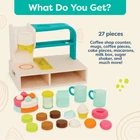 A cup o' coffee and something sweet… what a treat! The Mini Chef - Coffee Playset from comes with everything little baristas need to set up their coffee or bakery. can place a mug right under the coffee machine and slide any of the 6 coffee pieces into it to watch 'em drop in the cup. They can then add milk, sugar, and a topping for an extra touch of fun! After brewing the coffee, children can try out make-believe baking and serve their colorful desserts to pretend customers. Will you pick a piece of cake, a lil' macaron, a cupcake, or a doughnut? The choice is yours! Not to mention, this coffee & bakery set also comes with plenty of storage space and features handy handles that make it easy to move the counter from here to there. Discover the full Mini Chef collection from to find more role-play sets for the little chef in your life! Recommended for 3 years and older. B. sure to check out ' playroom pals – B. play, B. baby, and B. spaces! Coffee Play Set: A jam-packed tabletop station that comes with everything little baristas and bakers need! 20+ Pieces: This bakery play set includes a coffee counter, mugs, coffee pieces, cake pieces, macarons, a milk box, a sugar shaker, and more. Fun Features: Slide the coffee into the machine to watch it drop in the cup, assemble the reversible cake, and shake the sugar dispenser for fun sounds! Pretend Play Toys: Playing with these pretend baking toys can spark creativity, improve social skills, and develop dexterity. Age: The Mini Chef - Coffee Playset is recommended for 3 years +
