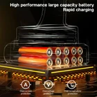 Specification: Product weight (including packaging): Product weight: 2.52KG Packaging size: 38cm*20cm*15cm Package Included: 1 x Suitcase 2 x battery 1 x 4-inch saw blade 1 x 6-inch saw blade 2 x 4" chain 2 X 6" chain 1 x Charger 1 x Screwdriver Features: In actual testing, when the machine is running continuously, the continuous battery life of 3 batteries of 12VH can be used for 10 minutes, 5 batteries of 24VH can be used for 15 minutes, 10 batteries of 48VH can be used for 30 minutes, and 15 batteries of 96VH can be used for 45 minutes. For safety we deigned with a safety baffle to prevent wood from splashing, and a safety lock button to prevent accidental activation. Warmly equipped with safety hand gloves, safety eye goggle, and safety earplugs to make sure multiple protection for users.