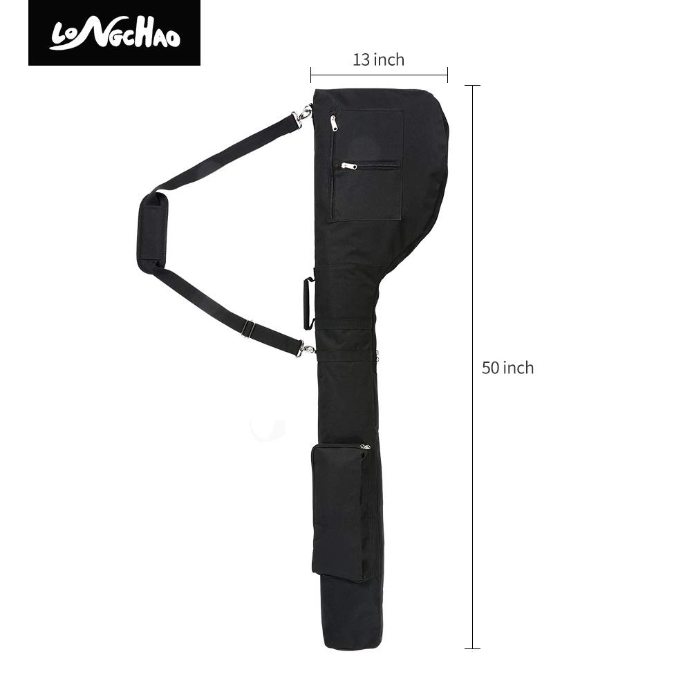 The 50" portable bag by LONGCHAO. Made of a lightweight, yet durable material. It is the perfect bag for hitting the driving range or executive course. This bag carries the clubs you need as well as having 1 big pocket and 2 zippered pockets for balls, tees, divot tools, or whatever else you may need during your round. Perfect for beginner, junior, and senior golfers who may not carry a full complement of clubs When not in use, it can be folded up and stored neatly out of the way. Golf Bag - Improved pads shoulderstraps that do not chafe the shoulders, distribute pressure, and are adjustable. When the shoulder straps are removed, the side handles allow for easy carrying as a handheld golf bag Golf Bags for Men - Can accommodate 6-8 golf clubs with a double zipper design for easy access to the clubs. It has 3 additional side pockets to hold everyday golf accessories Durable and Wear-Resistant - Made from nylon fabric that is strong and wear-resistant, with reinforced stitching for good load-bearing capacity. The smooth interior will not scratch the golf clubs, making it suitable for frequent use by golf enthusiasts Lightweight Waterproof and Foldable - Made of waterproof material to handle unexpected situations. The ping golf bag lightweight, soft, and foldable, fitting easily into a golf travel bag or golf cart bag Worry Free Service - Available in red, black, and blue, these golf club bags are easily distinguishable both in transit and on the golf course. If you have any questions or issues, please contact us first for hassle-free solutions to ensure your complete satisfaction