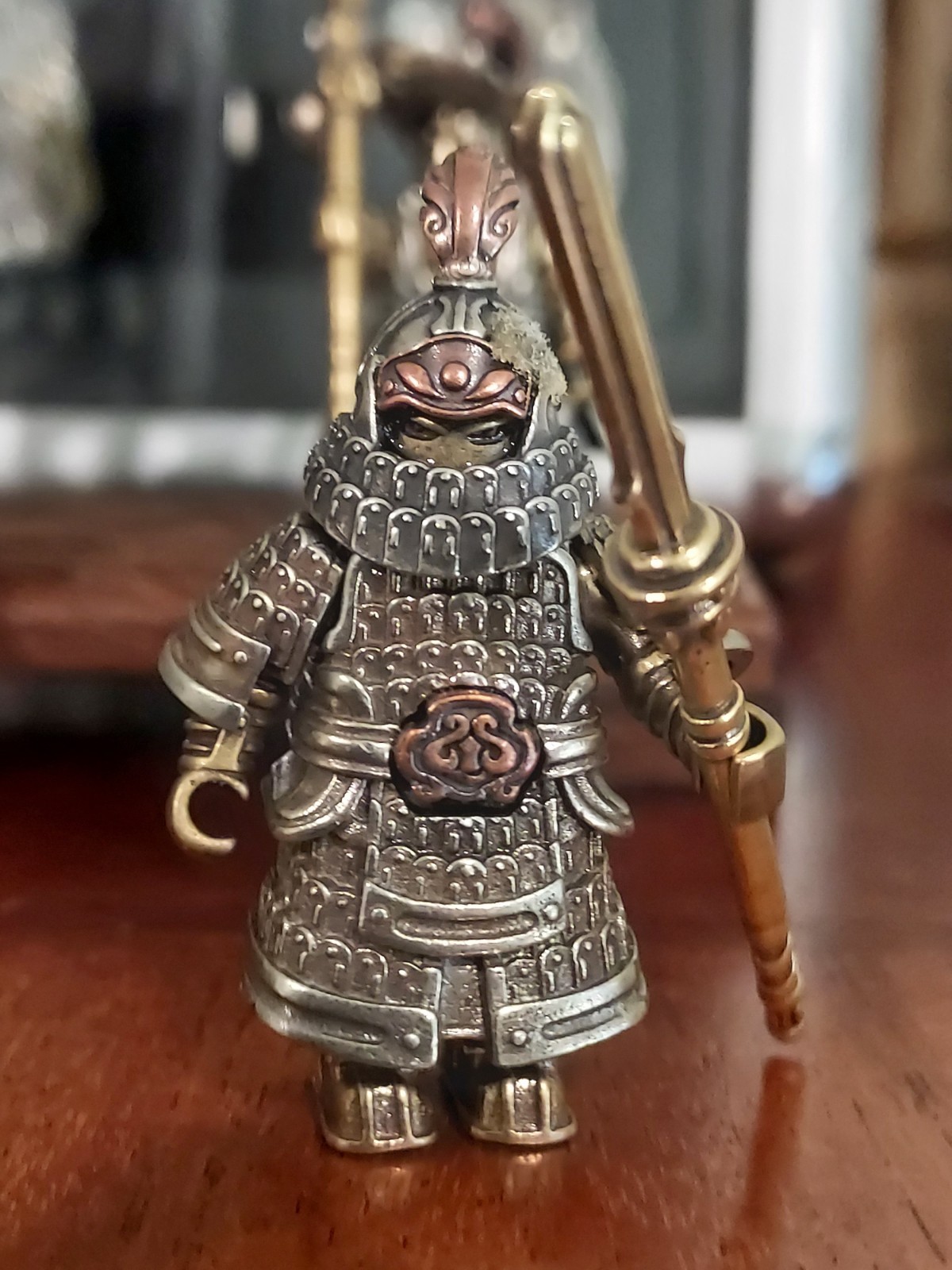 I got a set of these for Christmas and I loved them so much I found the manufacturer and got more. This isn't a cheap lego- it's solid Metal and well made. The website it was bought from gave this description and you can see the listing photo along with some in hand pics. Feel free to PM me with questions The Mini Metal Magnetic Samurai guy is a unique desktop ornament inspired by LEGOs, made of bronze and brass materials. This set is perfect for collectors and enthusiasts of action figures and accessories. This magnetic ornament brings a touch of fantasy to any space, making it a cool and eye-catching addition to any collection