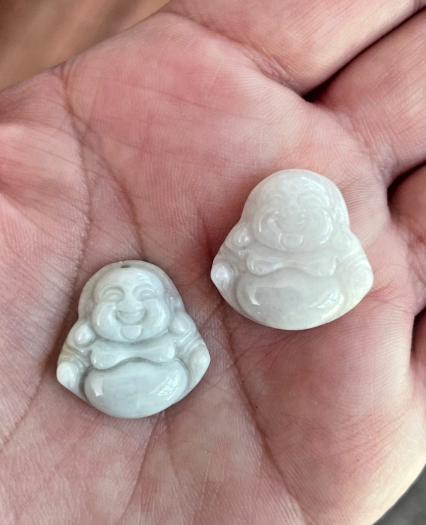 These two Jade Buddha’s already have a hole drilled in the top of each one to make as a pendant.