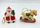 Miniature Christmas Figures Ornament Santa and Rocking Horse Russ Berrie & Co both are in very good condition and measures approx. 1.5" . Hassle free returns.