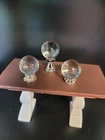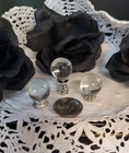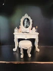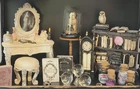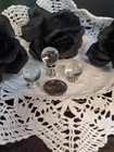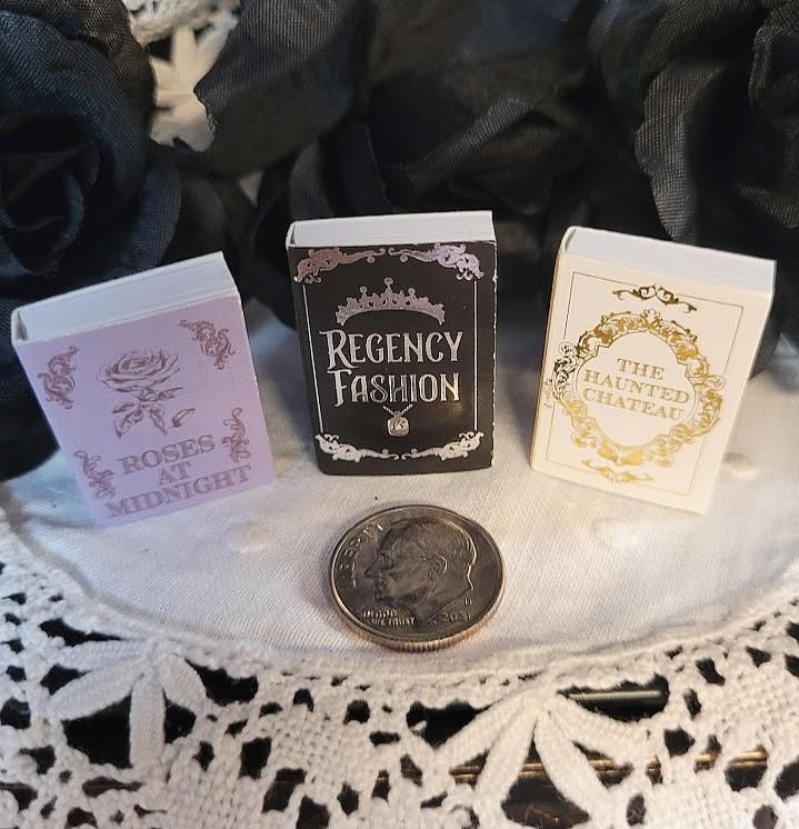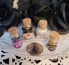 These unique miniature gothic style Halloween dollhouse accessories and decorations are in a 1:12 scale. Handpainted and made from polyresin, glass and other materials, these miniature decorations are designed in a multicolor gothic style, perfect for adding a spooky and whimsical touch to any room of a dollhouse or fairy garden. They would also add a touch of decorative Halloween spirit to your kitchen window shelf, fireplace mantel or bookcase. With its Halloween theme and hand-painted finish, these spooky little pieces are ideal for miniature enthusiasts aged 12 and up looking to add a touch of fantasy and mystique to their collection. Please choose from the drop-down menu. Please note that price listed is for one (1) item or a set of items only, as described (for example, a set of 2, set of 3, etc.). Additional items shown are for display purposes only, but may be for sale in our shop. Approximate measurements are listed below: 1. Haunted Grandfather Clock-2-1/2"T x 3/4"L x 3/8"D 2. Chateau Books Set of Three (3)-1"T x 3/4"L x 1/4" D (all three books are printed on front & back and fully open with blank pages) 3. Skull and Spell Book in Cloche-1-1/2"T x 1-1/4"L x 1-1/4"D (cloche is made of glass) SOLD OUT 4. Distressed Owl and Bookcase-3-1/2"T x 2-1/2"L x 1"D 5. Glitter Potion Bottles Set of Four (4)-2 @ 1.10"T x .5"L x .5"D, 2 @ .90T x .39"L x .39"D (bottles are filled and are made of glass) 6. Crystal Balls Set of Three (3)-1 @ 1"T x .5"L x .5" D, 2 @ 3/4" T x .5"L x .5"D (clear glass and silver/crystal base) 7. Silver Skulls Set of Two (2)-1/2"T x 1/4"L x 3/8"D 8. Ghostly Vanity with Stool-Vanity 3.5"T x 2.5"L x 1.5"D, Stool 1-1/4"T x 1"L x 1"D All items are for decorative purposes only and are not intended as a toy or for children under the age of 12. Due to variances of computer monitor and camera settings, actual appearance of items may vary slightly. We combine shipping to give you the best rate. Please note there are minimum shipping rates from USPS and UPS. From a non-pet and smoke free environment. Thank you for your support of our small business!