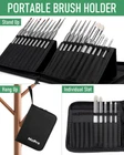 Different Shapes and Sizes - 15 PCS detail brushes in different shapes and sizes(Liners 4/0, 3/0, Rounds 4/0, 3/0, 2/0, 0, 1, 2, 4, Flats 0, 1, Spot 0, 1, Angled 2, Filbert 2). Easily create fine spot and precise line on your painting, bringing more expressive details to your work. 5PCS drybrushes in size #3, #5, #7, #11, #13-1/2, perfect for miniature painting, Warhammer 40k, citadel, figurine and all kinds of models Goat Hair Dry Brushes - Specially designed for model painting. Made of synthetic goat hair mixed with real goat hair. The domed brush head provides even coverage, adds depth and dimension to your painting. Suitable for texture enhancement, applying metallic highlights or cleaning dust. The bristle is durable and resistant to deformation or shedding after long time use Premium Bristle - Nicpro paint brushes feature high quality synthetic bristle which works well in all mediums like acrylic, gouache, oil and watercolor, providing expressive precise strokes and vivid details. The bristle holds its shape and stays intact even after long time use, ensuring consistent results as beginning Exquisite Craftsmanship - The paint brush handle is made of sturdy birch wood, with 7-layer UV coated paint on the surface, easy to keep clean and gives you the best smooth painting experience ever. The triangular handle is comfortable to hold and reduces painting fatigue. The double crimped ferrule keeps the bristle steady and prevents hair shedding Nylon Paint Brush Holder - We provide a portable and stylish brush case to carry and organize the brushes. It provide excellent protection for your paint brushes. The high-density nylon feels gentle and comfortable in your hands, while also being waterproof and oil-proof for the brushes it hold. It fits well in a backpack or carry bag, perfect for outdoor painting or traveling Product Description How to maintain the brush? ◄Brush Care tips► Careful and proper treatment of brushes will prolong their life. It's important to clean the brushes right away after each use to avoid paint drying on the bristles. Before use: Soak in water at room temperature for a few minutes before use, and then gently rub the brush with your thumb and index finger to clean up the loose hair from bottom to top. Floating hair will not affect the use and life of the brush. After use : Use brush cleaner or mild detergent to clean, and then clean with water. After that, squeeze out the water, and place it in a cool and dry place. If deformed: Pour a small amount of warm water and straighten out the shape with your fingertips to restore the original shape. Do not soak the brush for a long time. If the paint brush is soaked for too long, it will cause certain damage to the pen tip. ◄Kind Reminder► Our paint brushes might lose some bristels when used or washed for the first time. This is normal and would not affect the use of the brushes. Nicpro Detail Paint Brushes Add to Cart Add to Cart Add to Cart Add to Cart Add to Cart Customer Reviews 4.5 out of 5 stars 63 4.7 out of 5 stars 740 4.6 out of 5 stars 19 4.6 out of 5 stars 109 4.7 out of 5 stars 1,796 Price $29.99 $ 29 . 99 $19.99 $ 19 . 99 $13.99 $ 13 . 99 $27.99 $ 27 . 99 $17.59 $ 17 . 59 Count 20 Pack 15 Pack 12 Pack 21 Pack 16 Pack Color Gray Gray Pastel Black Black Case Nylon Case Nylon Case Paper Holder Cardboard Case Cardboard Case Dry Brush ✔ ✘ ✔ ✔ ✘ Hair Goat Hair + Synthetic Hair Synthetic Hair Goat Hair + Synthetic Hair Goat Hair + Synthetic Hair Synthetic Hair