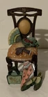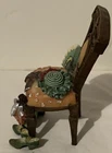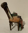 The product is a Miniature Resin Boutique Style Chair adorned with women's accessories. It is a decorative collectible item perfect for displaying in a home or office setting, adding a touch of charm and sophistication to any space. The chair is designed in a boutique style, making it a unique and eye-catching piece for collectors or those who appreciate intricate details in their decor.