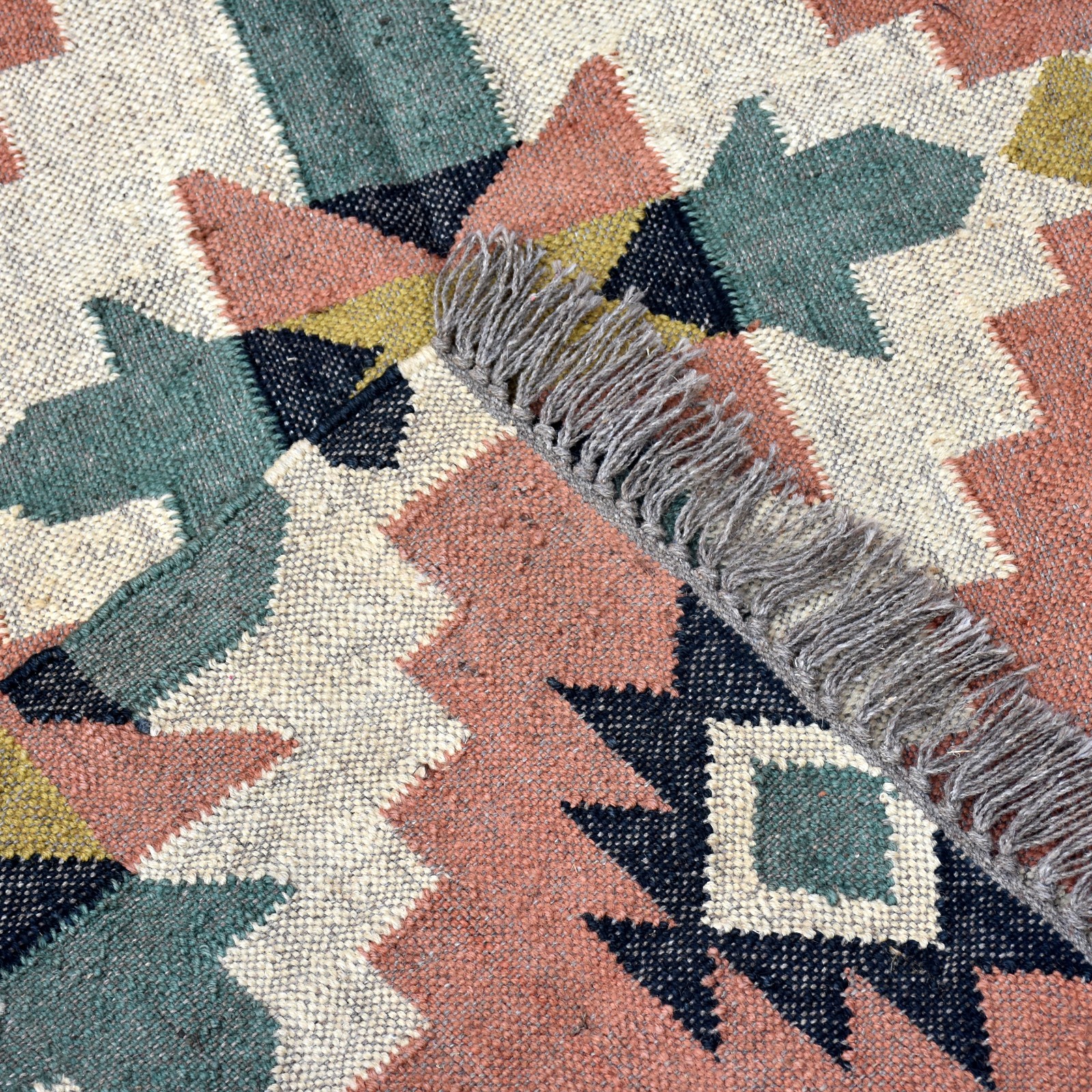 Add warmth and elegance to your space with this handmade wool and jute rug, crafted using age-old traditional weaving techniques. Every piece is created on a loom by skilled artisans, ensuring exceptional quality and attention to detail. ✔️ Premium Wool & Jute Blend – Made with strong natural wool and jute fibers for exceptional durability, rustic charm, and long-lasting beauty. ✔️ Reversible Design – Both sides feature the exact same pattern, giving you double the use and value. ✔️ Natural Dyes – Colors are rich, eco-friendly, and completely washable. No color bleeding or fading during washes. ✔️ Flat Weave & Fine Craftsmanship – Lightweight yet tightly woven, perfect for both modern and traditional décor. ✔️ Custom Orders Welcome – We can create this rug in any size or color as per your requirements. 📌 Note: If you prefer your rug without tassels or fringes, simply inform us. We will customize it for you. This rug is more than just a floor covering—it’s a handcrafted masterpiece designed to beautify your home. Perfect for living rooms, bedrooms, or any space that needs a touch of artisanal charm.
