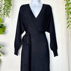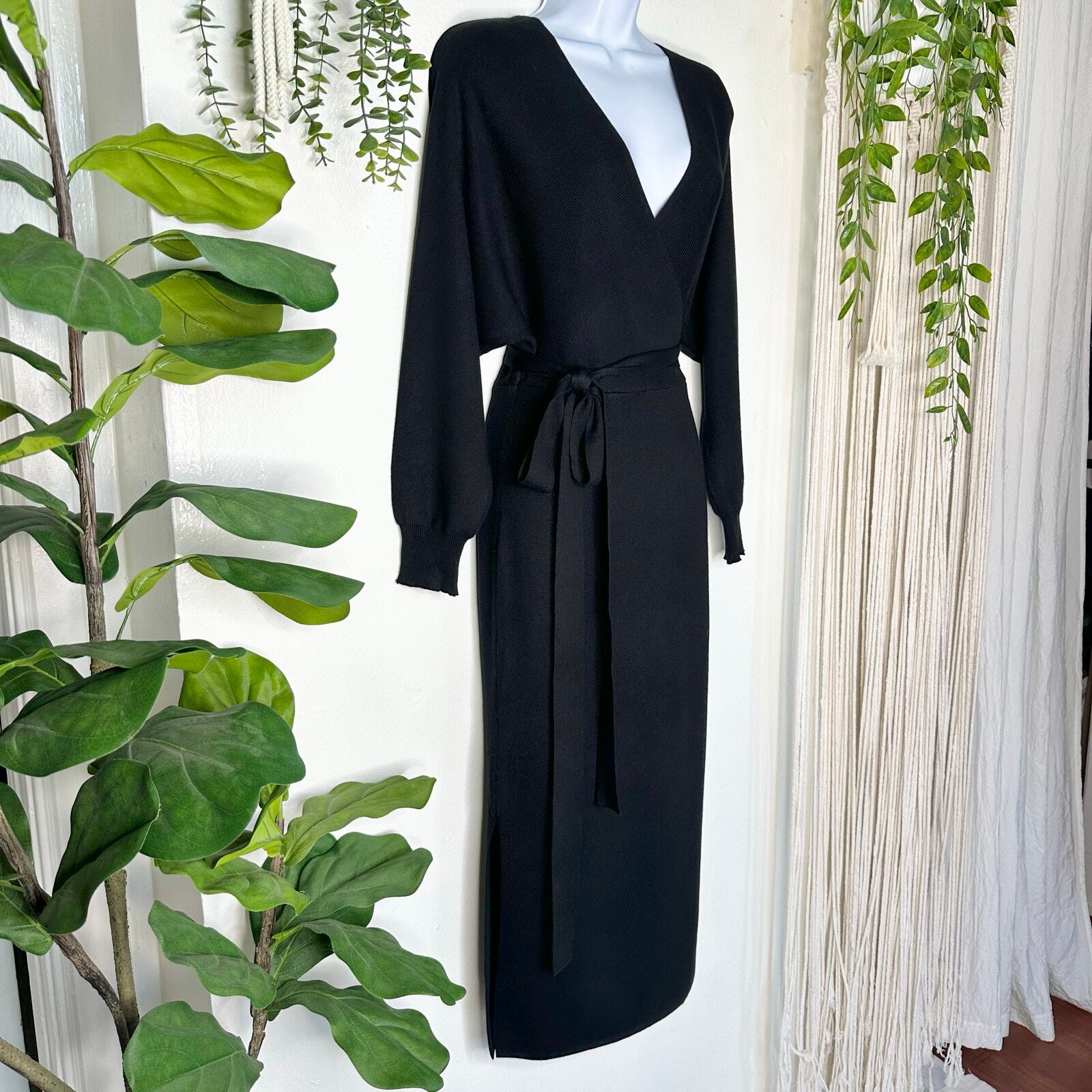 In like new condition No brand tags Classy & sexy staple for your closet Very soft cozy sweater material 70% viscose / 30% nylon Single lined / double stitched Machine wash cold delicate Flat line dry Features: -bat winged sleeves -opened back -2 ankle side slits -adjustable/versatile waist tie Has lots of stretch Size small / can also fit medium Measurements taken flat lay: Shoulders: 16" Sleeves: 23" Underarms: Approx. 13" Hips: 16" Length: 48"