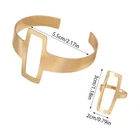 Features: Punk Style Cuff Bracelet Rings: Embrace the edgy and rebellious punk style with this set of cuff bracelet rings. Made from durable metal, these accessories feature intricate details and bold designs that will make a statement wherever you go. Geometrical Open Cuff Bangle with Ring: Add a touch of modern elegance to your ensemble with this geometrical open cuff bangle featuring a stylish ring. The sleek and minimalist design is perfect for those who appreciate clean lines and contemporary fashion. Exaggerated Metal Cuff Bracelet with Ring: Make a bold and daring fashion statement with this exaggerated metal cuff bracelet that comes with a matching ring. The eye-catching design and metallic finish will instantly elevate any outfit, making it perfect for special occasions or nights out. Simple Geometrical Style Alloy Open Cuff: Achieve a chic and trendy look with this simple yet stylish geometrical style alloy open cuff. The minimalist design and good-quality alloy material make it a versatile accessory that can be worn with both casual and formal attire. Heavy Punk Style Metal Open Bracelet Set: Channel your inner style with this heavy punk style metal open bracelet set. Crafted with attention to detail, these bold and chunky bracelets exudes a tough and rebellious vibe, making them a must-have for any punk fashion enthusiast. Specifications: Material: Alloy Bangle Diameter: 5.5cm Rings Size: 3*2cm Note: Due to the screen lighting effect, the actual color of the product may be slightly different. Due to manual measurement, please allow size error. Package includes: 1*Bangle 1*Ring