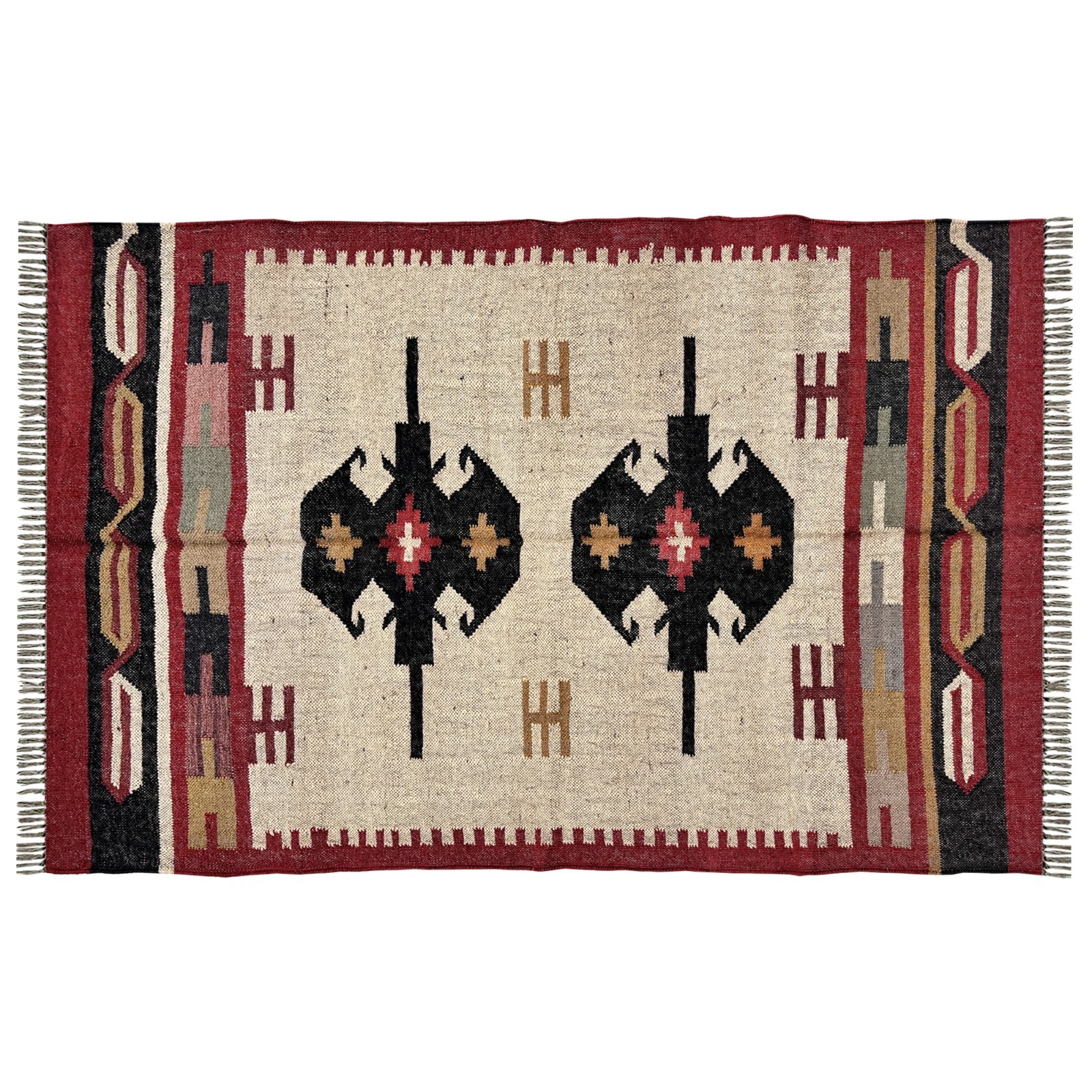 Add warmth and elegance to your space with this handmade wool and jute rug, crafted using age-old traditional weaving techniques. Every piece is created on a loom by skilled artisans, ensuring exceptional quality and attention to detail. ✔️ Premium Wool & Jute Blend – Made with strong natural wool and jute fibers for exceptional durability, rustic charm, and long-lasting beauty. ✔️ Reversible Design – Both sides feature the exact same pattern, giving you double the use and value. ✔️ Natural Dyes – Colors are rich, eco-friendly, and completely washable. No color bleeding or fading during washes. ✔️ Flat Weave & Fine Craftsmanship – Lightweight yet tightly woven, perfect for both modern and traditional décor. ✔️ Custom Orders Welcome – We can create this rug in any size or color as per your requirements. 📌 Note: If you prefer your rug without tassels or fringes, simply inform us. We will customize it for you. This rug is more than just a floor covering—it’s a handcrafted masterpiece designed to beautify your home. Perfect for living rooms, bedrooms, or any space that needs a touch of artisanal charm.