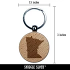 Minnesota State Silhouette Engraved Wood Round Keychain Tag Charm
