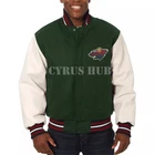 Minnesota Wild Varsity Jacket Green Wool & White Leather Sleeves Letterman Style Product Description: Show off your Minnesota Wild pride with this Varsity Letterman Jacket , designed for true fans and style enthusiasts alike. Crafted with premium green wool and genuine white leather sleeves, this jacket exudes class and team spirit. The traditional varsity design features a comfortable fit, making it perfect for game days, casual outings, or showing your support for the Minnesota Wild wherever you go. Its high-quality construction ensures durability and warmth for seasons to come. Specifications: Body Material: Premium green wool Sleeves Material: Genuine white leather Closure: Snap-button front Pockets: Two side pockets Lining: Soft quilted interior for added warmth Cuffs and Hem: Rib-knit for a snug fit Product Details: Design: Classic varsity letterman style Fit: Regular fit, true to size Usage: Casual wear, sports events, and outdoor activities Care Instructions: Dry clean only to maintain quality Features: High-quality green wool body for warmth and comfort Genuine leather sleeves for a premium look and durability Snap-button closure for a traditional varsity aesthetic Soft quilted lining ensures comfort during chilly weather Rib-knit collar, cuffs, and hem provide a snug, secure fit Tags: Minnesota Wild Jacket, Varsity Letterman, Wool and Leather Jacket, Sports Fan Apparel, Team Spirit Clothing Shipping Policy: Handling Time: 5 business days Delivery Time: 3-4 business days after dispatch Shipping Method: Reliable courier services Payment Policy: Payments are securely processed through eBay. Return Policy: Returns accepted within 7 days of delivery. Note: Change-of-mind returns are not applicable.