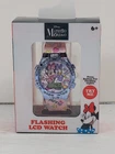 This Minnie Mouse wristwatch is perfect for young girls who love Disney characters. The watch features a flashing face and a silicone band in pink color. The digital display shows accurate time and is powered by a quartz movement system. The watch is new with tags and comes with original packaging.