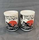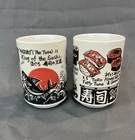 Set of 2 drinking cups. Textured ceramic, glazed. Tuna sushi design. Excellent used condition, no chips or cracks.