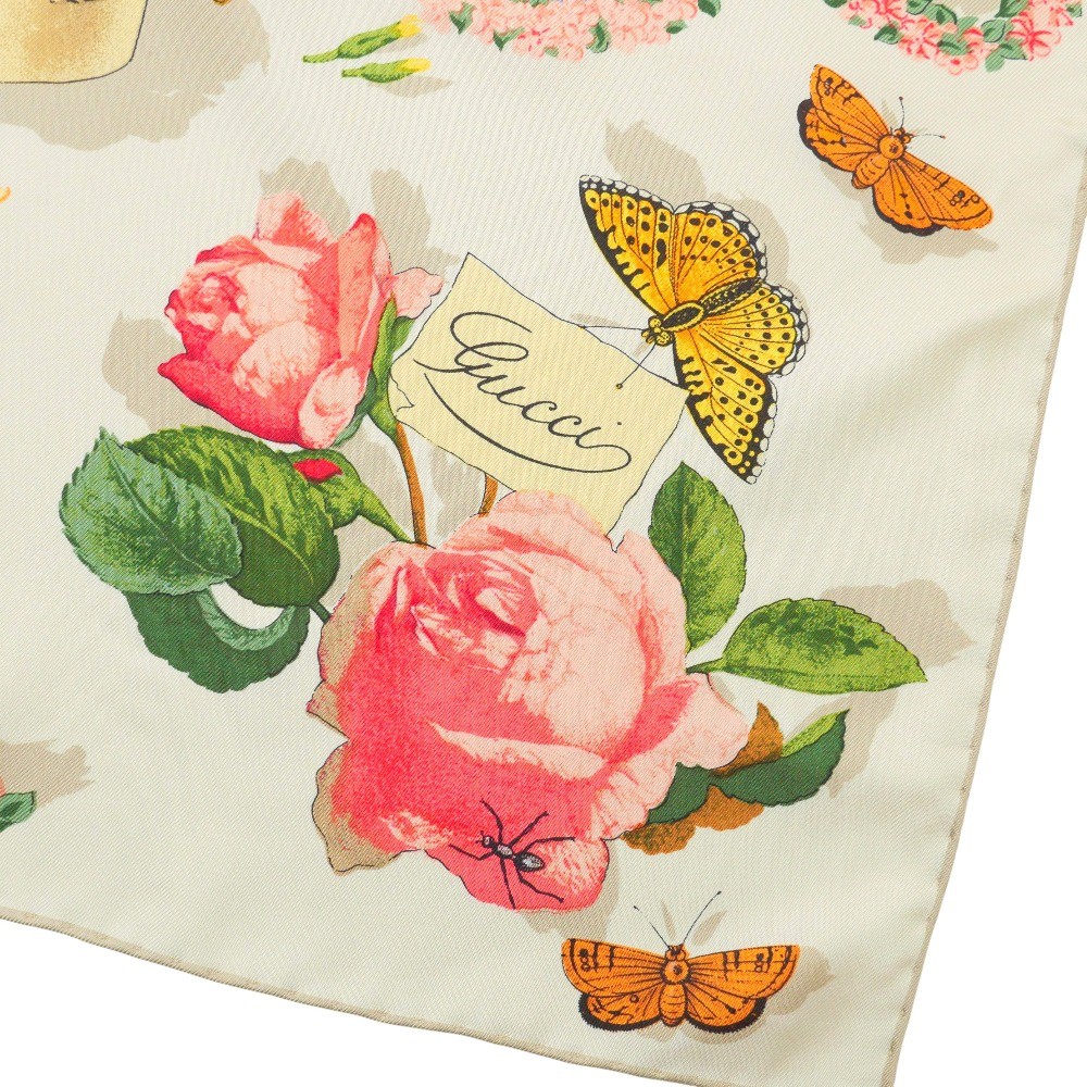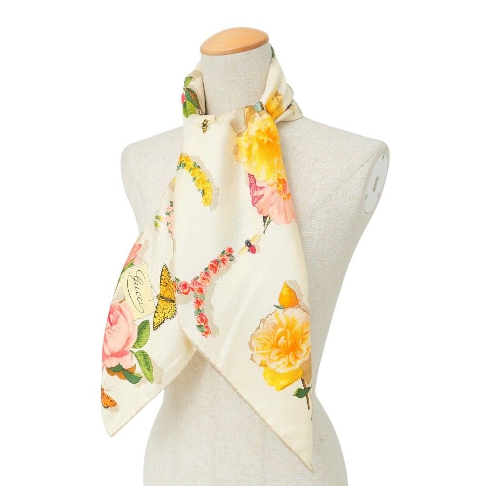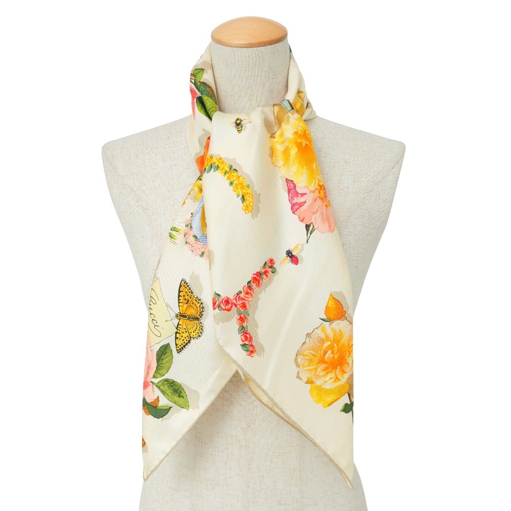 ■Mint■GUCCI scarf All-silk flower and insect pattern bandana Branded clothing【second hand】20250718/RA5558 GUCCI scarf 【Condition details added】 Beautiful item. ※Please understand that this is a used item. Item Information Brand GUCCI Size Actual size of product Total Length:approx.85cm Width:approx.87cm Material 100% silk Production MADE IN ITALY Color Beige multi-color