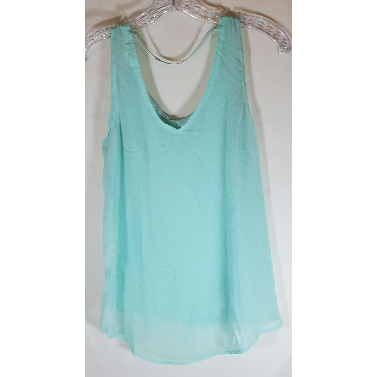 The Mint Green Tank Top in size M is a stylish blend of comfort and flair. Its cotton front ensures softness, while the sheer back adds a touch of allure. The studded neckline provides a hint of glamour, making it a versatile choice for both casual outings and more dressed-up occasions. Flat lay measurement Pit to pit - 19" approx. Shoulder to hem - 22 " approx. **Fast shipping** Sunday through Thursday purchases, processed and on its way to you, next day. ***Make an offer! All offers considered.
