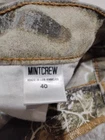 MintCrew Cargo Pants Mens 40 Camouflage Camo Utility Outdoor Hunting Condition: Fair used condition – moderate wear, lower hems are frayed and torn, particularly at the back of both legs as shown in photos 100% cotton – see care and fabric tag for details Classic camo pattern throughout Cargo pockets on both legs with snap closures Silver-tone rivets and hardware, button front with zip fly Two front pockets, two back pockets Made in Los Angeles, USA Tag size: 40 Mens Approximate flat measurements: Waist 20.5 in, Rise 13 in, Inseam 30 in, Leg opening 8 in Great for outdoor, hunting, utilitarian or casual style Please see all photos for conditions and precise measurements