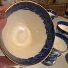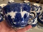 This set of 10 cups in blue and white pottery is a beautiful addition to any collection. The cups are made by Minton and feature a round shape with a diameter of 3.5 inches. The Blue Willow pattern adds a touch of elegance to any table setting and is perfect for serving tea or coffee. These cups are antique and have a unique history that adds character to any collection. Pre-owned Old-All have staining on inside-4 have cracks and 2 of these the crack goes to the outside also 1 of these has a flea bite at rim-2 other cups have a flea bite at the rim. Gold is in good antique condition. Pictures are part of the description. Please view all pictures and contact me if you have questions. Visit my Store for other Great Finds and when you find multiple items you desire to purchase, I will combine your shipments (if possible) to save you money. Thank you for Your Business,