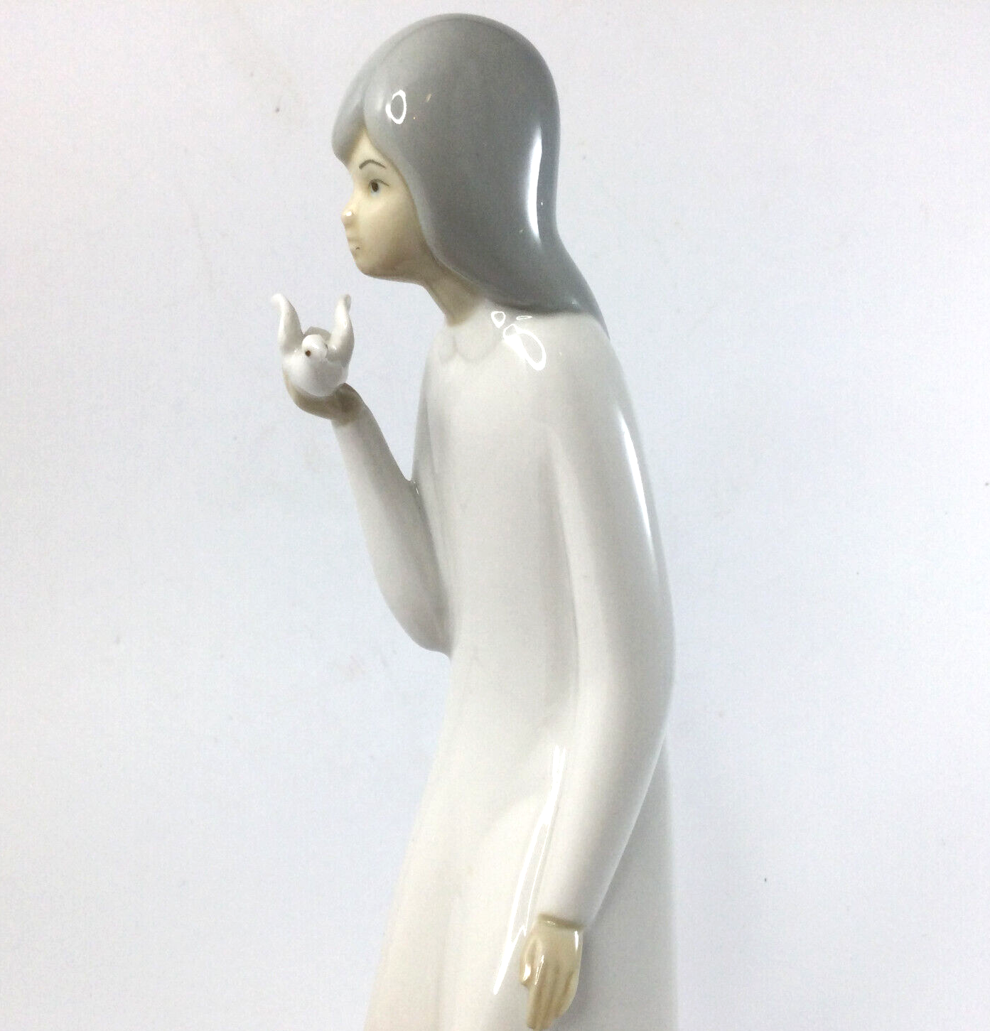 Miquel Requena Valencia Spain Porcelain Figurine Women Bird Dove White Grey. Very good condition, no chips or cracks. It is 8.5" H. InvN/GS/3