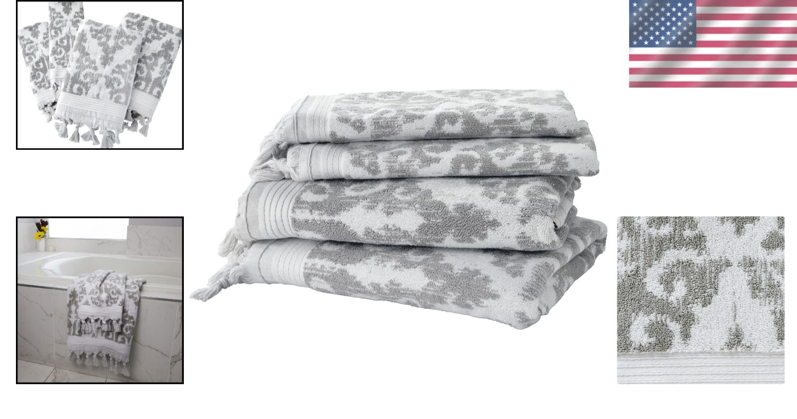 Mirage Fringe 4-Piece Towel Set, Gray ‹ › ‹ › ‹ › ‹ › ‹ › ‹ › ‹ › ‹ › ‹ › Mirage Fringe 4-Piece Towel Set in Gray Indulge yourself in luxury with our Mirage Fringe 4-Piece Towel Set, expertly crafted from 100% Turkish cotton. This exquisite set includes: 2 Bath Towels (28" x 54") 2 Hand Towels (16" x 26") Features: Luxury yarn-dyed Turkish cotton for unmatched softness. Charming terry jacquard texture accented with hand-knotted tassels along the hem. Stunning 2-tone medallion pattern with reversing colors on the opposite side. Double-stitched side seams for added durability and strength. OEKO-TEX certified, ensuring your towels are free from harmful chemicals. Benefits: Experience superior softness and absorbency that improves with each wash. Lightweight yet durable design for everyday use. Add a touch of elegance and style to any bathroom décor. Easy to care for with machine wash capabilities. Hand-knotted tassels add a unique, artisanal touch to classic towel design. Why Choose the Mirage Fringe Towel Set? Elevate your bathing experience with our Mirage Fringe Towel Set. Each towel is crafted with precision using Turkish cotton, known for its long fibers that result in stronger, softer, and more absorbent towels. The exquisite jacquard pattern and hand-knotted tassels create a visual allure that transforms your bathroom into a luxurious retreat. The detailed craftsmanship ensures durability, making this set a lasting addition to your home. Don’t settle for ordinary towels; embrace the sophistication of the Mirage Fringe Towel Set and redefine your self-care ritual. Order yours today and indulge in soft, sumptuous comfort every day! Shipping Free & Fast Shipping - We offer free shipping to most of the USA with a normal delivery time of 3-10 business days. However, due to various situations, additional delivery time (up to 3 weeks) may be required for some items. Alternative Carriers - We may use alternative carriers (e.g. USPS, FedEx, UPS, etc.) to ensure your package arrives safely and on time. Due to the use of multiple carriers, we are unable to provide a tracking number automatically. Handling Time - Orders are processed and shipped within 1-5 business days of receiving cleared payment. Shipping Restrictions - Shipping to Alaska, Hawaii, Puerto Rico, Guam, and other US territories may incur shipping charges or delivery restrictions. Please contact us before ordering, or your order can be refunded/cancelled. State Restrictions - There may be restrictions based on your state of purchase. For example, certain items may not be shipped to California due to state regulations. Contact for Tracking Updates - If you require tracking updates or have any concerns about the delivery of your order, please feel free to contact us, and we will be happy to assist you. Return 30-Day Hassle-Free Returns - We want you to be completely satisfied with your purchase. If you are not, you can return the item within 30 days of receiving it for a full refund or exchange. Easy Return Process - To start a return, simply contact us and we will provide you with a prepaid return shipping label and detailed instructions. Restocking Fee - There are no restocking fees for returns. However, the buyer is responsible for return shipping costs if the return is not due to a seller's error. Refund Processing Time - Refunds will be processed within 5 business days of receiving the returned item in its condition. Payment We accept all major credit cards, PayPal, and Apple Pay for your convenience. Your payment information is secure and encrypted to ensure a safe and seamless transaction. Please complete your payment within 3 days of purchase to avoid any delays in shipping. Feedback Your feedback is extremely important to us. We strive to provide the best products and customer service possible. If you are satisfied with your purchase, please take a moment to leave us a positive review. If you have any concerns or issues with your order, please contact us before leaving negative feedback. We are committed to resolving any problems and ensuring your satisfaction. Contact Us If you have any questions or concerns, please feel free to out to our customer support team. You can contact us through the eBay messaging system. We are available Monday to Friday, 9:00 am to 5:00 pm EST, and we will do our best to respond to your inquiry within 24 hours. Buy it now and enjoy a pleasant shopping experience! Unit Quantity: 1.0 count Material: 100% Cotton,Turkish Cotton,Yarn-Dyed,Soft Terry Jacquard Set Includes: Bath Towel,Hand Towel Theme: 4-piece Towel Set Room: Bathroom Features: Lightweight,Hand-Knotted Tassels,Double-Stitched Side Seams,OEKO-TEX Certified,2-Tone Medallion Pattern Softness: Soft Care Instructions: Machine Wash Type: Towel Set Color: Gray Size: Bath Towel Set Pattern: Solid Shape: Rectangle Number of Items in Set: Four-Piece