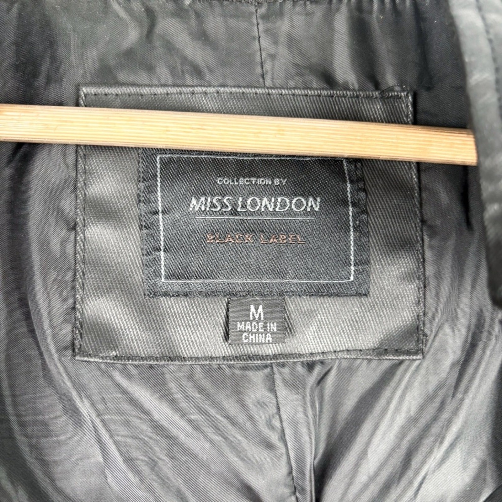 Miss London Black Utility Hooded Jacket Size: Medium Belted, zip pockets, hood, layered look sleeves, utility style, coated fabric Great condition! No rips or stains.