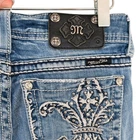 Miss Me Jeans cropped denim in a light wash with distinctive rhinestone embellished back pockets featuring a butterfly and fleur de lis design. The waistband showcases a signature 'M' logo plate. Designed exclusively for Buckle, these jeans offer a stylish touch perfect for casual outings, concerts, or a night out with friends. Wear noted see pics. missing M on back Measurements: • Waist: 26 in • Inseam: 24 in • Rise: 8 in • Hips: 32 in • Leg Opening: 12 in Style: Cropped Department: Women Fabric Wash: Medium Waist Size: 25 in Type: Jeans Accents: Embroidered, Rhinestone, Logo, Studded Features: Pockets, Distressed, Crop Fit: Slim Pattern: Solid Rise: Low (6.5-8.5 in) Fabric Type: Denim Inseam: 24 in Material: Cotton Blend, Spandex Closure: Button Theme: Animals, Logo Keywords: Miss Me Jeans, Buckle exclusive, rhinestone embellished, butterfly detail, fleur de lis, light wash denim, cropped fit, designer denim, boutique style, fashion jeans, country western, sparkle accents, summer style, trendy denim All items come from a smoke free, golden retriever dog friendly home. All of items unless NWT or Dry Clean Only are washed with Tide or according to care tag if hand wash only. We try our best to disclose any flaws with items, if we miss something please reach out and let us know. We can offer combined shipping on all our items. Please compare the items measurements to something you already own. We ship M-F within business days.
