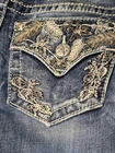 $ 7.92Miss Me Jeans Womens 27 Light Wash Bootcut Distressed Flap Pockets JP4375