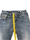 No obvious flaws. Fading w age, double button and zipper closure The Miss Me Y2K Bootcut Jeans in women's size 28 feature rhinestone embellished flap pockets, adding a touch of glamour to a classic denim garment. These low-rise, zip-closed jeans are machine washable and have a regular fit, making them comfortable and easy to care for. The bootcut style and 5-pocket design offer both fashion and functionality, while the solid blue color and medium wash give a versatile look that can be styled for any season. Perfect for a casual yet stylish woman who loves to elevate her denim wardrobe.