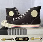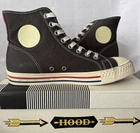Mitchell & Ness owns the Hood Rubber Company, a heritage footwear brand that was relaunched in 2021. The Hood Rubber Company was originally founded in 1896 by brothers Frederic and Arthur Hood. The company was based in Watertown, Massachusetts and manufactured shoes and rubber products. In 1929, the company merged with B. F. Goodrich and became a subsidiary of that company. The Hood Rubber Company continued to manufacture shoes until the plant closed in 1969. Mitchell & Ness relaunched the Hood Rubber Company to introduce the brand's history to a new generation of