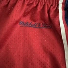 Get ready to show off your love for the Detroit Pistons with these Mitchell & Ness Authentic NBA throwback vintage shorts. These shorts are perfect for any young Pistons fan who wants to represent their team in style. The red color and elastic waist make these shorts both stylish and comfortable to wear.The drawstring closure and adjustable waist ensure a perfect fit for any young athlete, while the lightweight and breathable material make them perfect for summer, fall, and spring. These shorts are ideal for any occasion, whether it's for basketball or just for casual wear. Get your hands on these boys' XL 26" waist, 8.5" inseam (18/20) shorts today and show off your love for the Detroit Pistons in style! Excellent condition. No rips/holes/tears/stains/discoloration/snags. Kept in a smoke/pet free home.