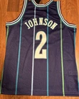 Show your love for the Charlotte Hornets and Larry Johnson with this Mitchell & Ness NBA Swingman Alternate Jersey. The purple color and L size make it the perfect addition to any fan's collection. This jersey is made for men and features the iconic Mitchell & Ness brand. Represent your favorite basketball team and player with this officially licensed product. The jersey is perfect for game day or any casual occasion. Add it to your collection today and show off your team spirit!
