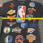 The Mitchell & Ness NBA All Team Logos T Shirt is a black graphic basketball-themed shirt for men in size medium. It features a crew neck and short sleeves, making it a comfortable and stylish choice for sports enthusiasts. The shirt is made in Vietnam and showcases the iconic team logos of the NBA, perfect for any basketball fan looking to show their team pride.