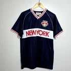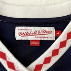 Brand: Mitchell & Ness Size: large Color: navy blue, red, white Features: Red Bull New York logo, short sleeves, v-neck, jersey material Condition: pre owned condition, no flaws Material: 75% polyester, 25% cotton Measurements (flat, approximate): -Chest: 20 in -Sleeve: 7 in -Length: 28 in