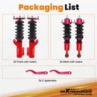 ZJPSS Adjustable Coilovers Lowering Suspension Kit for Mitsubishi Lancer 08-16 Top Camber Plate with Pillow Ball Mount Top Camber Plate with Pillow Ball Mount Provides More Precise Feel From Suspension And Steering. Anodized Shock Body With Anti-Corrosion Coating Manufactured From High Quality T-6061 Billet Aluminum With Anodized Finish For Superior Strength And Corrosion Protection. Drops From 1 to 3 Inch From Factory Ride Height Full Threaded Absorber Tube Casing For Independent Height Adjustment. Durable Cold Wound Steel & Heat Treated Coils High Rigidity 55CrSi Steel Cold-bent Coil Springs - Over 600k Continuously Stress Test With 0.04% Distortion Rate. Top Camber Plate with Pillow Ball Mount Anodized Shock Body With Anti-Corrosion Coating Drops From 1 to 3 Inch From Factory Ride Height Durable Cold Wound Steel & Heat Treated Coils Specifications Top mounts Adjustable camber plate Adjustable height Yes, Lowering 1-3 inch Front spring length 9 kg/mm (504 lbs/in) Rear spring length 6 kg/mm (336 lbs/in) Package Including 2 Front + 2 Rear Warranty 1 Year Features - Ride Height Adjustable - Drops From 1 to 3 Inch From Factory Ride Height - 55CrSi high strength durable cold wound steel & heat treated coils - Manufactured from high quality T-6061 billet aluminum with an anodized finish for superior strength and corrosion protection. - Improved Handling and stability without premature tire wear - Improved Vehicle Stability and traction in hard cornering situations - Full threaded absorber tube casing for independent height adjustment - Twin-Tube System for Comfortable Ride on Streets - Fully Rebuildable With All Parts Available Application For Mitsubishi Lancer(CX/CY) 2008-2016, except Lancer Evolution For Mitsubishi Outlander Sport(GA) 2011-2020 Specification Front top mount: Pillow ball with camber plate Damping adjustable: Not available Camber adjustable: Available Height adjustable: Yes, lowering 25-75mm depending on the vehicle models Front Spring Rate: 9kg/mm (504 lbs/in) Rear Spring Rate: 6 kg/mm (336 in/lbs) Spring length Front: 180 mm Spring length Rear: 179 mm Spring Preload advised: 7-10 mm Color: Red body with black spring Package included 2 x Front coil-overs 2 x Rear coil-overs 2 x C spanners ★ 30-day Money Back & 12-Month Replacement Guarantee. Please feel free to contact us if there is any question. Height Adjustable Lowering Kit; Independent Ride Height And Spring Tension Settings; High Rigidity 55CrSi Steel Cold-bent Springs; Anodized Shock Body With Anti-Corrosion Coating; Top Camber Plate with Pillow Ball Mount Provides More Precise Feel From Suspension And Steering; Full 1 Year Limited Warranty From Date Of Purchase. Other items you might also like Coilovers Suspension Lowering Kit For Mitsubishi Lancer 2008-2016 Adj. Height Coilovers Suspension Shocks Struts Kit for Mitsubishi Lancer (CX/CY) 2008-2016 Damper Adjustable Coilovers Lowering Kit FOR MITSUBISHI Lancer 2008-2016 Coilovers Suspension Adj Height Shocks Absorbers Kit For Mitsubishi Lancer 08-16 MaXpeedingrods 24 Click Coilovers Suspension Shocks for Mitsubishi Lancer 08-16 Adj. Damper Coilovers Kits for Mitsubishi Lancer Sedan 4-Door 08-16 Shock Strut 24 Way Damper Coilover Shocks & Struts Kit for Mitsubishi Lancer GTS Sedan 08-16 Shipping Terms of Sales Payment Contact us All orders will be shipped within 1 business day after payment has been processed. For orders placed before 5:30 AM PST on business days, most items will be shipped out on the same day. All orders will be shipped with a tracking number via USPS, UPS, or FedEx Express and delivered within 2-6 business days We do not ship to P.O. Boxes, APO/FPO addresses, or Military Mail Boxes. Please ensure your address is confirmed by PayPal before checkout, as we only ship to confirmed addresses. 30-day free return and money back guarantee If you are not satisfied with your purchase, you can return the item with its original packaging to us for a full refund with no restocking fee. Please note that the return cost should be paid by the seller. One Year Unlimited Mileage Quality Guarantee If you receive incorrect items, items that are damaged during transportation, or defective items, we will accept returns and cover the return freight. Please note that the return cost should be prepaid by the buyer. After inspecting the faulty item, we will issue a refund of the return cost to the buyer. We offer a full refund or replacement for all faulty items, which includes the cost of original shipping. Please contact us before initiating a return. Our representatives will provide you with detailed instructions on how to proceed. Our guarantee covers only the cost of the item. We are not responsible for installation or other fees, such as labor, towing, additional repairs, or related expenses. We only accept payment through Paypal for all orders, which should be made through eBay. Paypal offers various payment methods, including credit card, direct debit, VISA, and others. For more information, please visit Paypal. Our customer service center is open 24 hours a day, seven days a week. If you have any questions, please don't hesitate to contact us. We are dedicated to providing excellent customer service and will do everything we can to ensure your satisfaction.