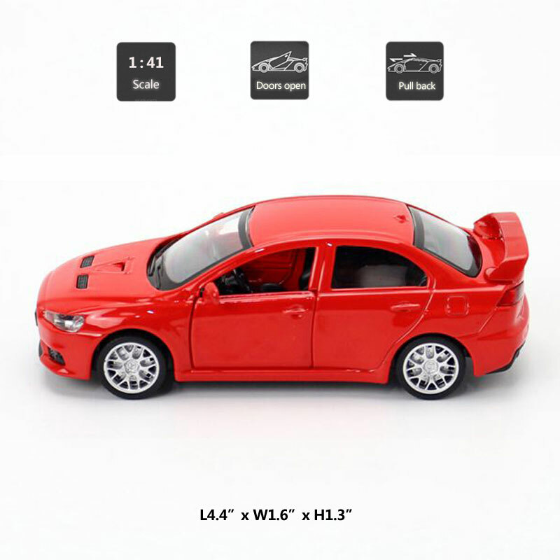 Mitsubishi Lancer Evolution X Toy Car Diecast Model Car 1:41 Toys for Boys Red Item Type Diecast & Toy Vehicles Scale 1:41 Material Diecast and ABS Color Red, as picture shows Dimension About L4.4" x W1.6" x H1.3" (L11.2 X W4.1 X H3.3 cm) Vehicle Type Sedan Function *Pull back *Two doors can be open Packing Packed in original color box, in excellent condition Tips *Great choice of gift for kids, especially for Birthday, Christmas and New Year Gift *Great item for collector, business gift, home decoration, office decoration, display Warning Don't put in mouth/Keep Away from Fire/Not for Children under 3 Years Notice Due to manual measurement, please allow a little error Package include 1 x 1:41 Scale Mitsubishi Lancer Evolution X Model Car Payment Delivery details Terms of sales Payment We accept paypal only. Delivery details We ship orders within 24 hours upon receipt of payment. Terms of sales We provide great products and service. If you have any problems with the order,please do contact us before leaving negative feedback and opening case on eBay.
