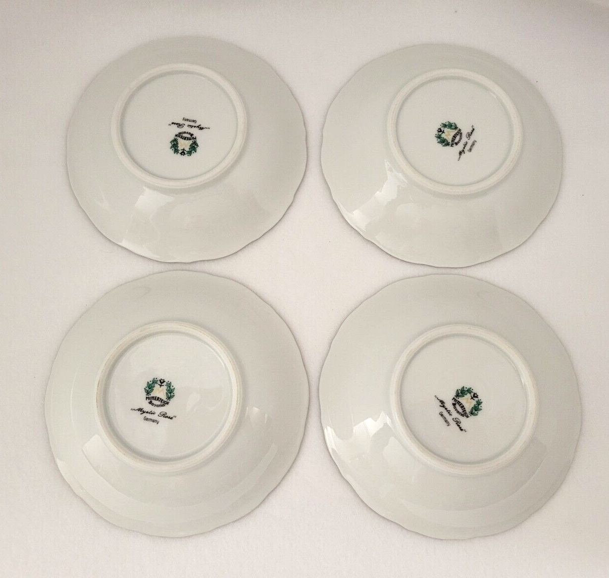 Mitterteich Bavarian Mystic Rose Silver Platinum Trim 4 - Approx. 5 inch Dessert Bowls 10 - Approx. 7 inch Dessert Plates 10 - Approx. 8 inch Salad Plates Each item is carefully packaged to prevent any damage and is shipped immediately with tracking.
