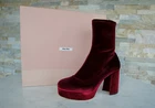 ++++ we speak English ++++ parliamo italiano ++++ nous parlons francais ++++ MIU MIU Exclusive platform ankle boots made of supple stretch velvet. Platform sole and heel also made of velvet. Liner made of leather and stretch fabric. Leather and rubber outsole. MIU MIU Lettering on the insole and outsole. Made in Italy Size / size EU 39 5UP059 Name: VELLUTO STRETCH Color: BORDEAUX Material: stretch velvet Heel height at the front 43.5 cm at the back 10 cm Shaft height from heel / shaft height 17.5 cm Shoes are in MIU MIU Box delivered with shoe bag new and unworn!!! Check out mine other items By all means, take me into yours Favorites on ++++ we speak English ++++ parliamo italiano ++++ nous parlons francais ++++ · Fees, taxes and duties for importing goods are not included in the item price or the shipping costs. These costs are to be borne by the buyer / Import duties, taxes and charges are not included in the item price or shipping charges. These charges are the buyer's responsibility . · Please check with your local customs authority prior to bidding and purchasing to determine what additional charges may apply/ Please check with your country's customs office to determine what these additional costs will be prior to bidding/buying. · Finally, one more note: · As an outlet, we mainly carry models from past collections. Some of the shoes were already on sale. Therefore, it may happen that the soles of the shoes show traces from the fitting, the shoe bag is missing or the box is no longer as new. Our shoes are all new and unworn!! · Fees, taxes and duties for importing goods are not included in the item price or the shipping costs. These costs are to be borne by the buyer / Import duties, taxes and charges are not included in the item price or shipping charges. These charges are the buyer's responsibility. · Please check with your local customs authority prior to bidding and purchasing to determine what additional charges may apply/ Please check with your country's customs office to determine what these additional costs will be prior to bidding/buying. · As an outlet, we mainly carry models from past collections. Some of the shoes were already on sale. Therefore, it may happen that the soles of the shoes show traces from the fitting, the shoe bag is missing or the box is no longer as new. Our