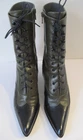 Elevate your shoe game with these vintage MIU MIU leather boots size 36 1/2. The wingtip design and pointed toe give these booties a classic and sophisticated look. The kitten heel is perfect for any occasion, whether it be casual or formal. The boots feature a zipper closure, making them easy to put on and take off. The green color and solid pattern make these boots a great addition to any winter, summer, fall, or spring wardrobe. The leather upper, insole, and outsole ensure durability and comfort. These mid-calf boots are perfect for women who want to add a touch of the 90s to their outfit. Gently used.