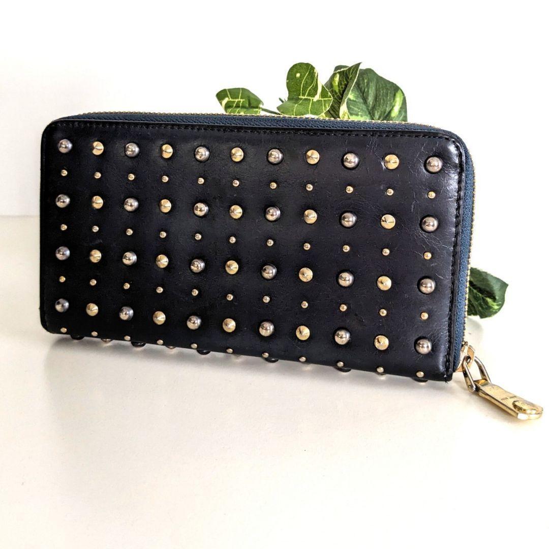 This wallet is a stylish and practical find! The studded leather gives it a cool, edgy look that works for both men and women. Despite being pre-owned, it's in great condition—just some minor wear that adds character. Spacious enough for cards and cash, perfect for daily use. Love the unique design!