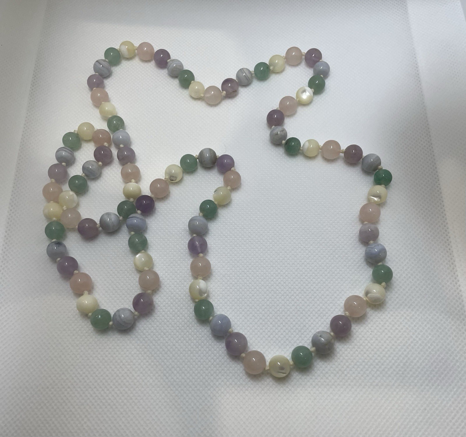 Mixed Earth Gemstones Pastel Multicolor 8.5mm Beaded 32 in Necklace. Condition is Pre-owned. Shipped with USPS Ground Advantage.