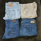 A mixed lot of three women's size 8 Levi's jeans (550, 515, Denizen from Levi) and one pair of khaki shorts. The jeans are vintage with a bootcut and straight leg style, featuring a 5-pocket design and button/zipper closure. Smokefree home. All in great shape. See pictures for condition. No returns. Denizen from Levis Modern Bootcut 8 L/C Relaxed Boot Cut 550 Levis 8L mis Levis 515 Boot Cut 8 Long Crew 83 Since 1983 Broken in Chino Classic Twill Size 8 City Fit 100% Cotton