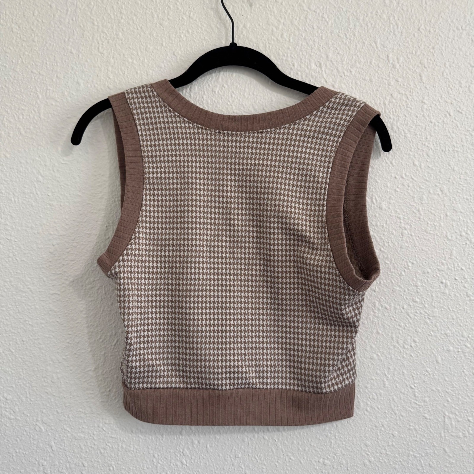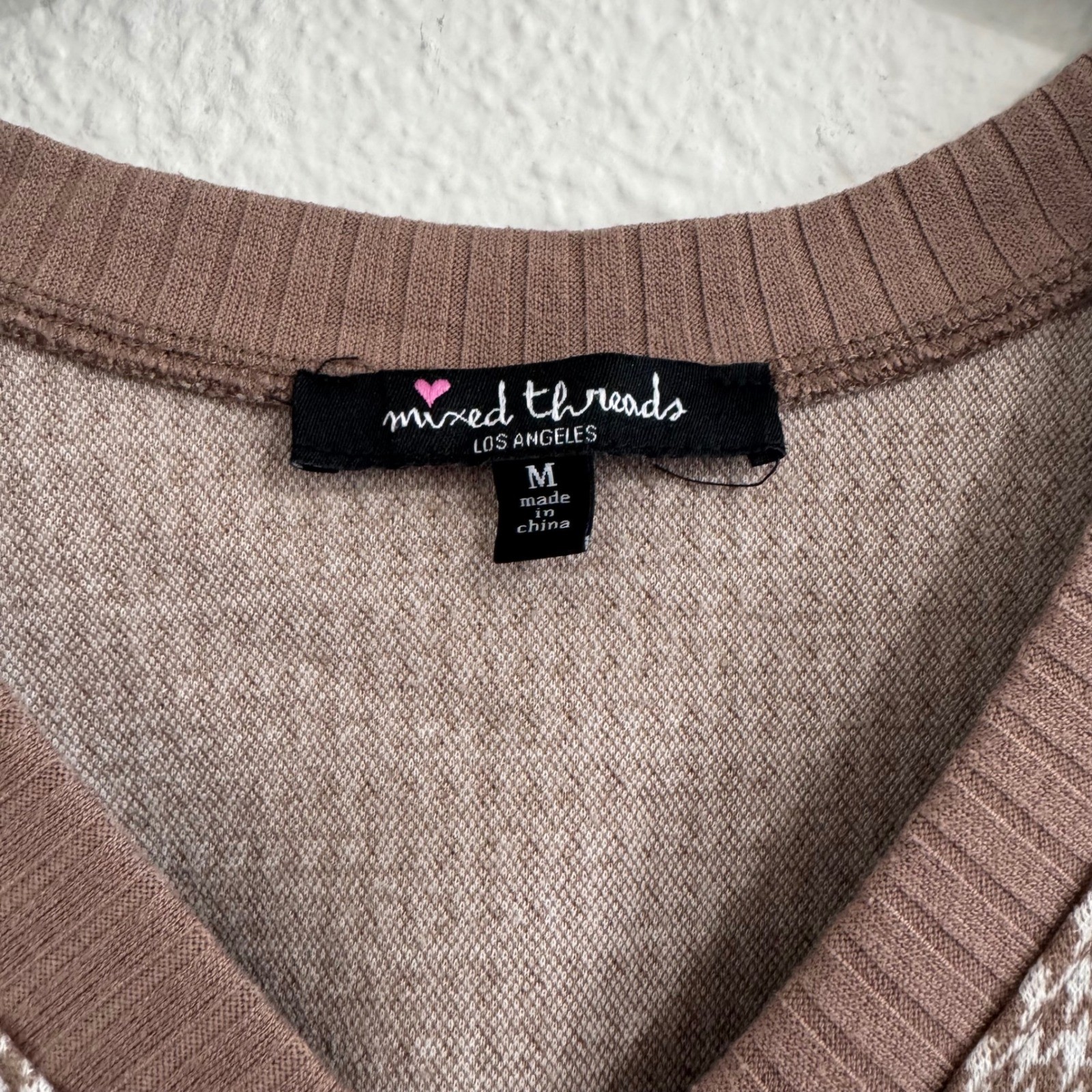 Trendy Mixed Threads LA sweater vest in a brown and white pattern. Features a soft knit, sleeveless design, and classic pullover style. Perfect for layering over long sleeves, button-downs, or turtlenecks. Size: Women's Medium Color: Brown & White Measurements: Per request Condition: Excellent pre-owned condition Keywords: Mixed Threads LA sweater vest, women's medium knit vest, brown white sleeveless sweater, trendy layering vest, fall winter knit top, classic pullover vest