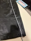The Mixit Women's Black Lined Leather Skirt in size 4 is a stylish and versatile piece suitable for both parties and casual occasions. Made from high-quality leather, this knee-length skirt features a straight and pencil style, with a solid black color and zip closure. The lined design adds a touch of luxury, making it perfect for the winter and spring seasons. Designed by Mixit, this skirt is a must-have for any woman looking to elevate her wardrobe with a chic and timeless piece. 28β waist and 23.5β length. Front side slit.