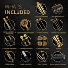 Return Policy Fast Delivery Trusted seller Mixology Bartender Kit – 24 Piece Gold Cocktail Shaker Set w/Stand – Essential Home Bar Accessories Martini Shaker, Jigger, Muddler, Chilling Cubes & More Product Description 24 PIECE BARTENDER SET: Our mixology bartender set includes a 24oz cocktail shaker, mixing spoon, muddler, strainer, straw cleaner, 2 spoon straws, 2 straws, 2 liquor pourers, 2 wine stoppers, 4 chilling cubes, jigger, corkscrew, wine aerator, 2 ice tongs, recipe booklet and an acrylic stand. All the necessary tools to be a top-notch bartender. WINE & MIXED DRINKS TOOLS: Not only does our drink mixer set have all the essentials to make the perfect cocktail, but it also includes everything you need to open, pour and store a delicious bottle of wine. This well-rounded set puts all your tools in one spot so you can be ready to whip up your favorite drink in no time! PREMIUM QUALITY TOOLS: Each tool in our cocktail shaker set is made of high-quality stainless steel with a smooth, shiny finish. The black acrylic stand was specially designed to hold all tools in a clean and organized fashion. Available in silver and gold. RECIPE BOOKLET: In addition to these essential tools, our kit also includes a recipe book with instructions for making a variety of cocktails. Whether you're a seasoned bartender or just starting out, this kit has everything you need to impress your friends and family with your mixology skills. THE PERFECT GIFT: This cocktail mixing set makes a great gift for a friend or family member who enjoys making cocktails or is interested in learning how to make them. It comes in sleek black packaging and can easily be set up in any kitchen or wet bar area. Shipping Returns Payment Shipping Shipping is FREE to all addresses other than APO/PO boxes in the lower 48 states. All our stock ships from US-based warehouses. Shipped via USPS or UPS (depending on location and package weight) Unless stated otherwise, all orders will ship within 24-72 hours of your payment being processed. Check our feedback to see the great reviews of FAST shipping we offer. Returns Seller does not accept returns Payment We currently accept payment via eBay managed payments only. Once payment is cleared, we will dispatch your shipment within 1-3 business days. Please refer to the "Shipping" tab for more information regarding shipping speed to your destination.