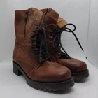 Features Brown Lace up Side zippers Combat boots Military Leather Boho Retro 90s Y2K Streetwear Great Pre-Loved Condition SIZE 39 Measurements Pit to Pit: Length: Waist: Rise: Inseam: Length: Please check to be sure of fit Smoke Free Pets Free Please feel free to contact me for any questions or offer Bundle Discounts Offered Fast Shipping *41226-5510-24*